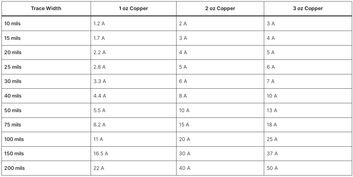 Trace Width vs. Current Tables